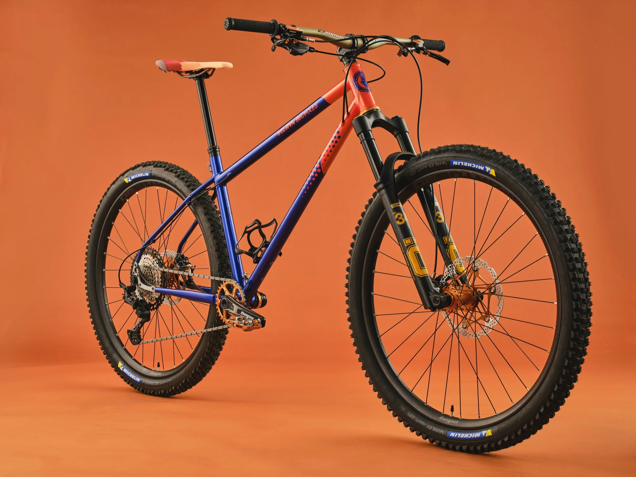 Photo by Adam Gasson for Bespoked. Selwyn steel Hardtail. Custom made in Samoens. Components from Ohlins, Hope, Shimano and Michelin